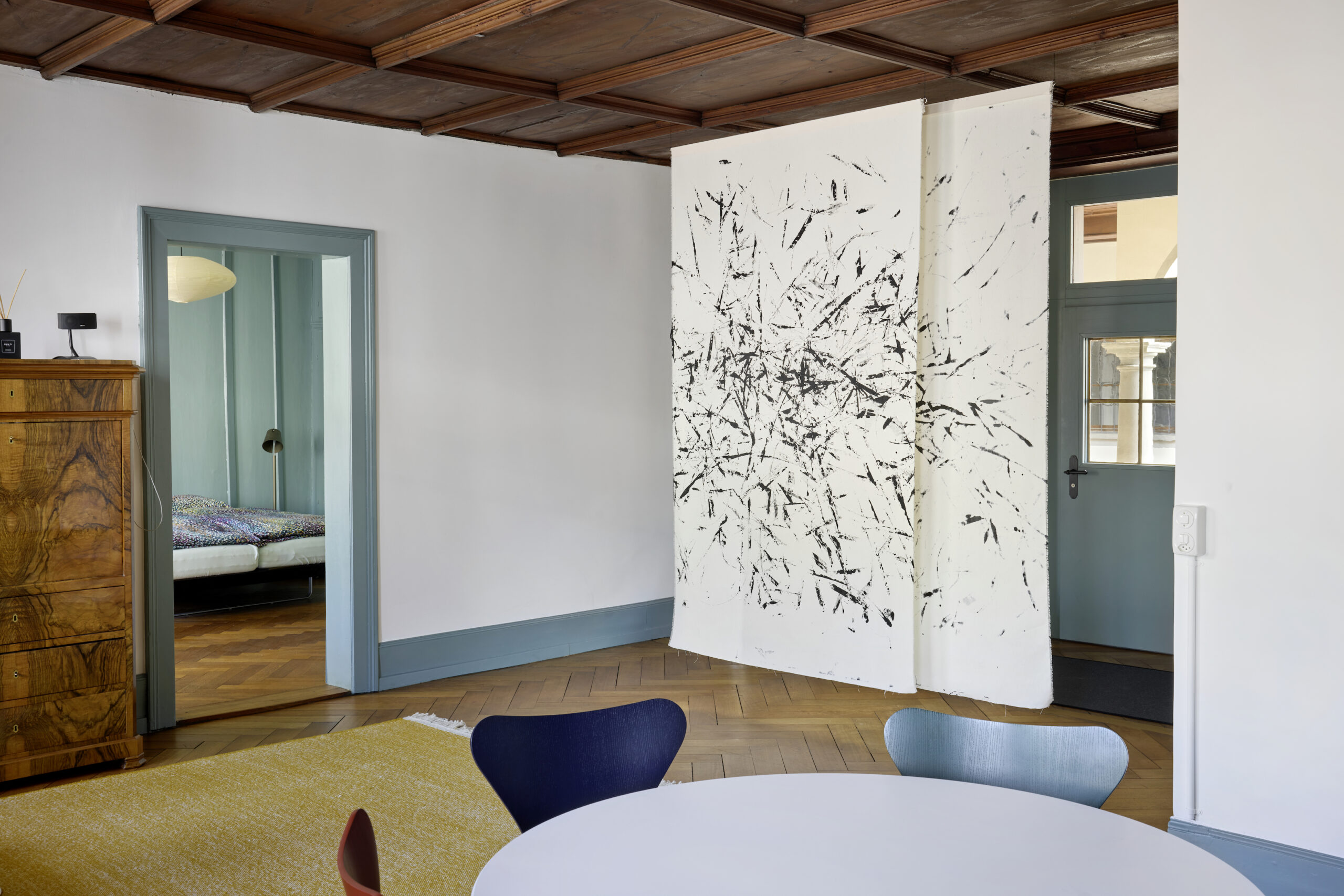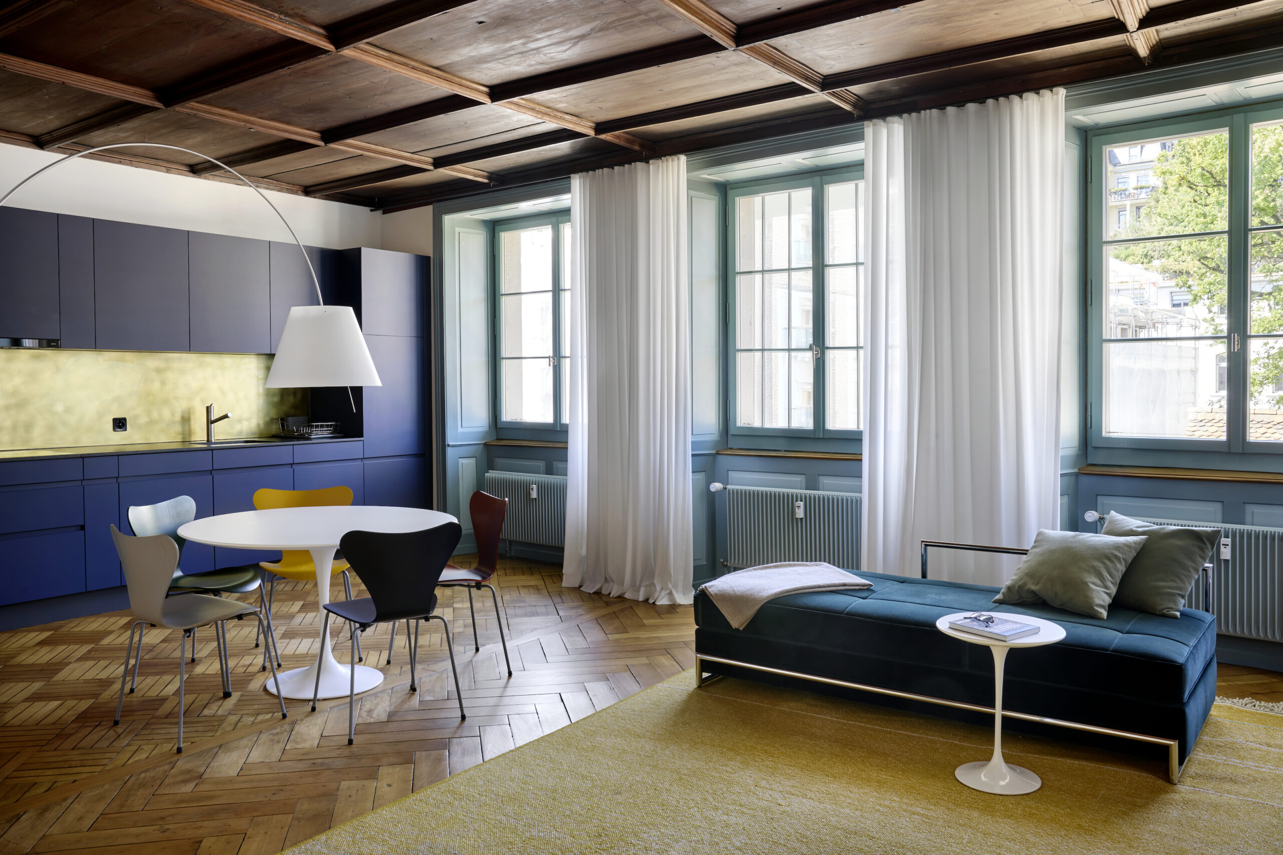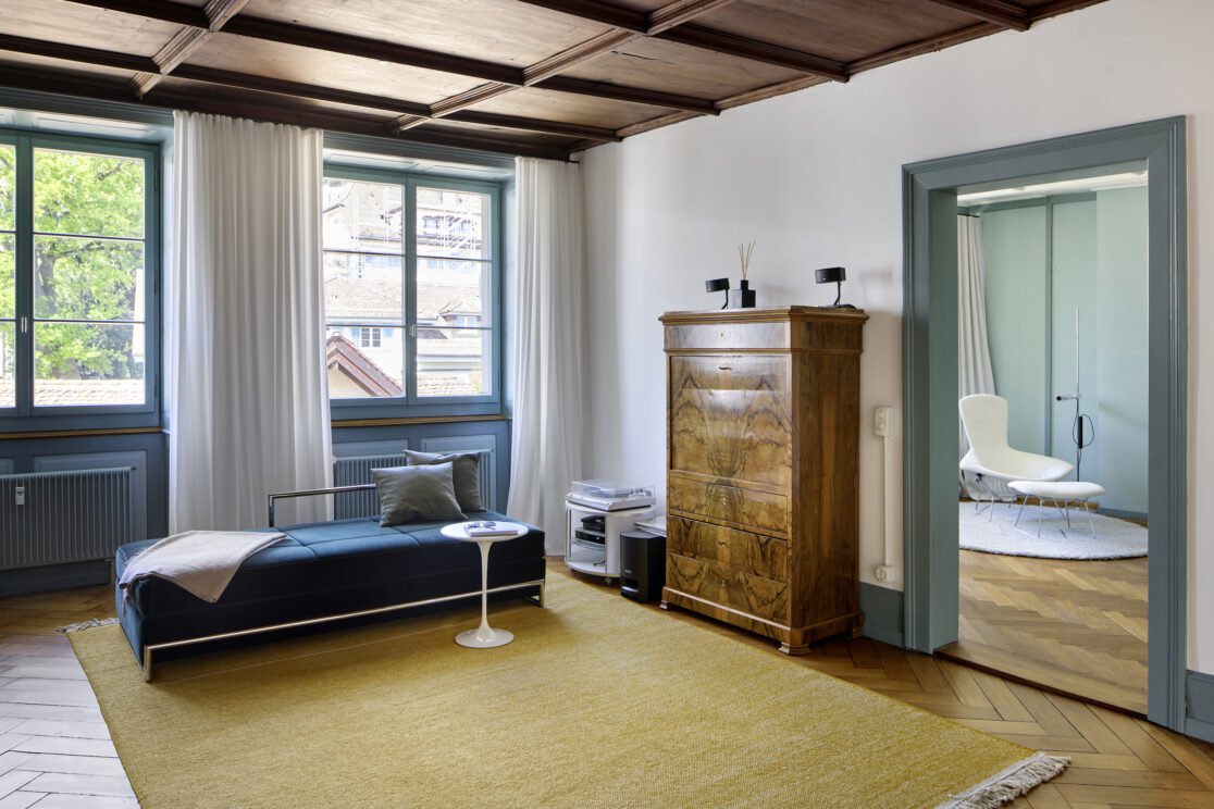 Unter dieser Voraussetzung war ein sorgfältiger Umgang mit der historischen Bausubstanz und situativ ein präziser Eingriff mit den neuen Elementen notwendig. Dem Bauprojekt liegt eine weitgehende Analyse der rund 500-jährigen Fenstergeschichte sowie ein restauratorischer Untersuch (1993), der Farbuntersuch der Innenräume im 3.OG durch Wendel Odermatt (2023) und zum Holzwerk im 3.OG von Peter Egloff (2023) zu Grunde.