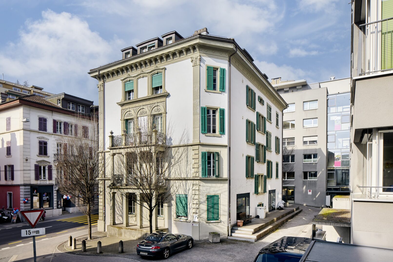 Als einer der wenigen Solitärbauten sticht der Blumenhof im sonst geschlossenen Straßenbild hervor. Das Wohn- und Geschäftshaus an der Zürichstrasse 42 in Luzern wurde 1874 erbaut und von der Kantonalen Denkmalpflege Luzern als schützenswertes Gebäude kategorisiert. Es handelt sich dabei um einen viergeschossigen, verputzten Massivbau mit einem flachgeneigtem Walmdach und stilistischen Fassadenelementen aus der Neurenaissance. Der Bau ist mit korinthischen Pilastern versehen, die an den Ecken Risalite andeuten. Das Hauptportal in der Mittelachse ist mit kunstvollen Sandsteinarbeiten geschmückt, während der zweigeschossige Balkon zur Seite Wesemlinrain aufwändig gestaltet ist und sowohl Sand- als auch Kunststein verwendet.