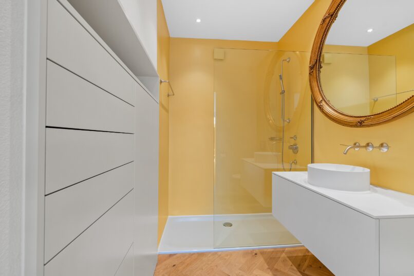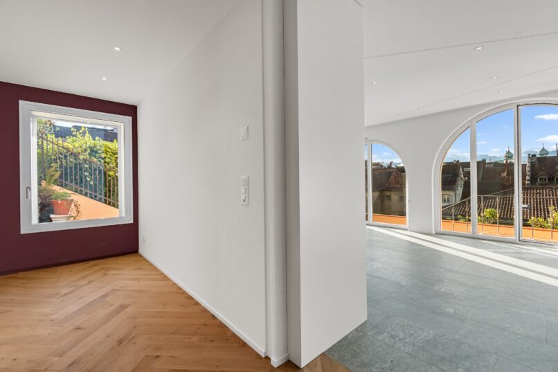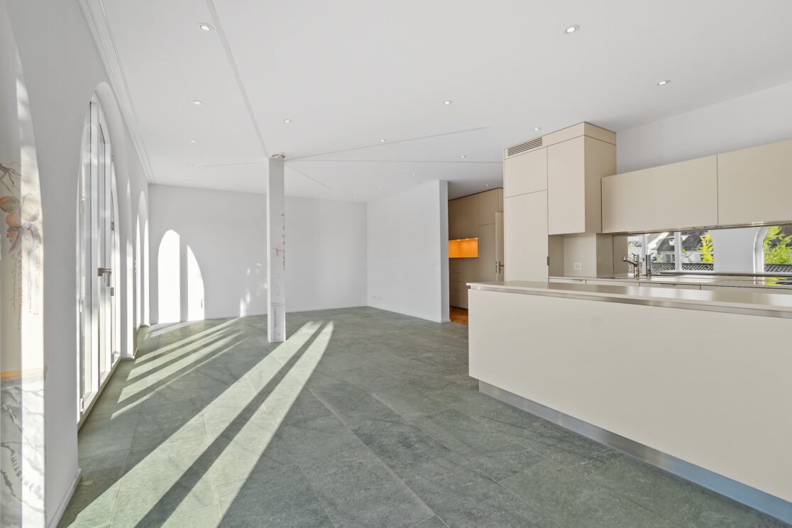 Die bestehende Wohnung im Hochparterre wurde umgebaut und renoviert. Ziel des Projektes war dabei die Umnutzung des Bestandes zu einer grosszügigeren und moderneren Wohnung. Dies ist durch mehrere statische Veränderungen und einen gesamten Fensterersatz erreicht worden, um die gesamte Fläche der Wohnung umfassend und besser nutzen zu können.